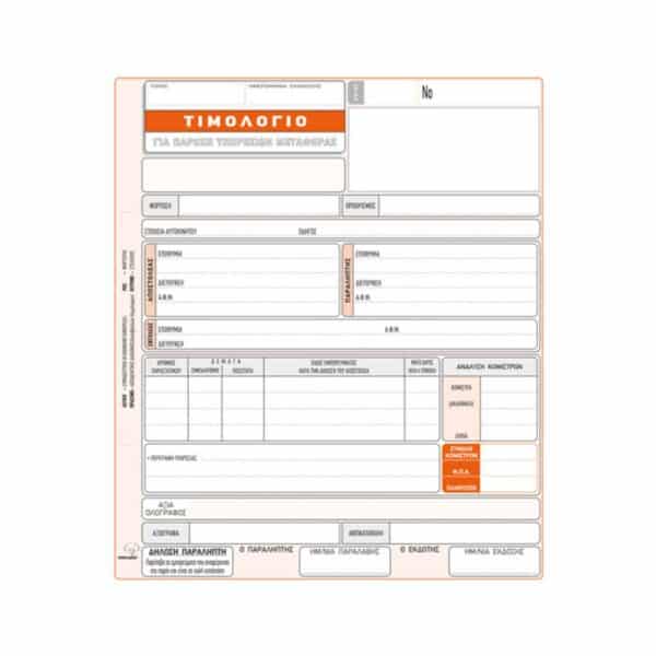 ΤΙΜΟΛΟΓΙΟ ΠΑΡΟΧΗΣ ΥΠΗΡΕΣΙΩΝ ΜΕΤΑΦΟΡΑΣ ΤΕΤΡΑΠΛΟΤΥΠΟ 254Δ 18x20cm ΤΥΠΟΤΡΑΣΤ