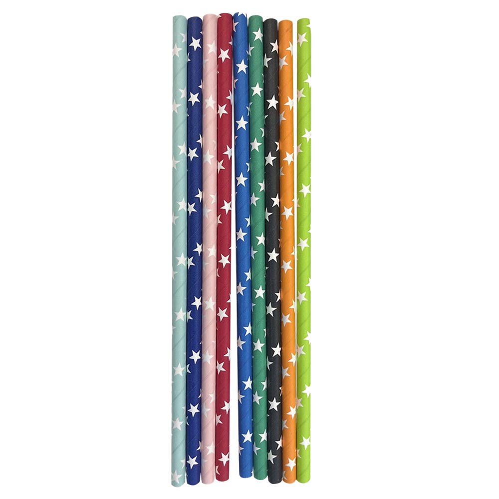 Σετ από 10 οικολογικά χάρτινα καλαμάκια σε λευκό χρώμα με κόκκινα και μπλε αστέρια, μήκους 20cm. Μια χαρούμενη και πολυδιάστατη επιλογή που συνδυάζει κλασικά χρώματα για να δώσει ζωντάνια σε κάθε παιδικό πάρτι ή εκδήλωση.