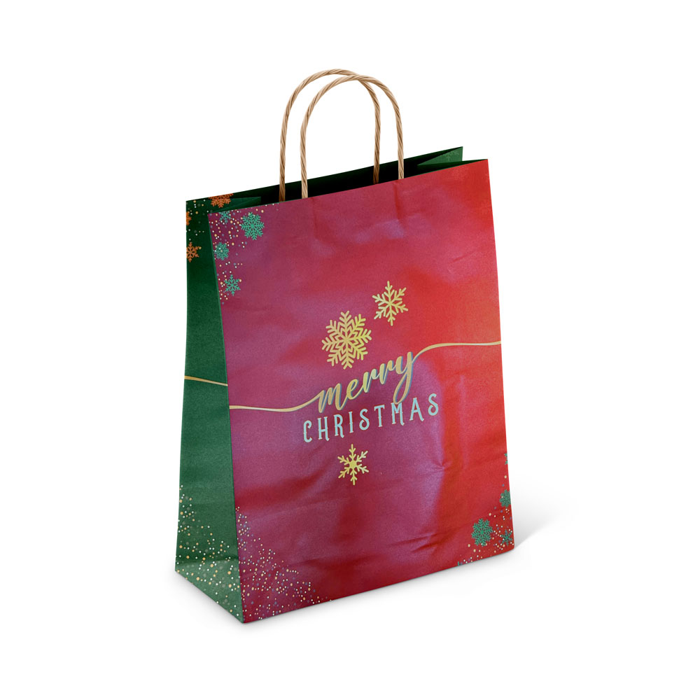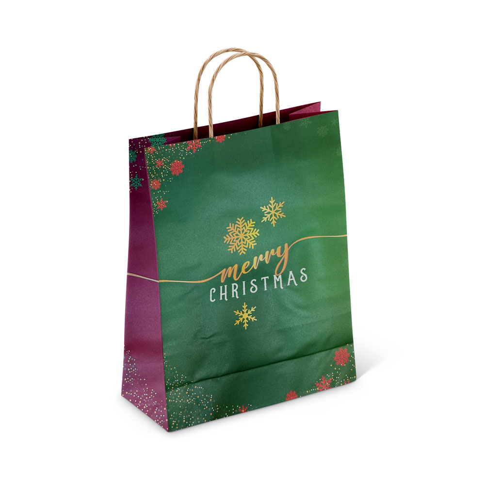 Χάρτινη τσάντα με στριφτό χερούλι και χριστουγεννιάτικο θέμα.