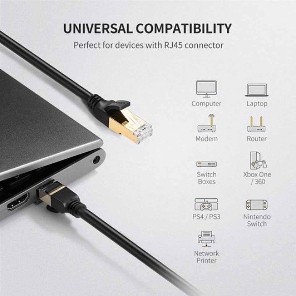 Είναι συμβατό για υπολογιστή, φορητό υπολογιστή, server υπολογιστή, εκτυπωτή, δρομολογητή, μόντεμ, switch boxe, πρόγραμμα αναπαραγωγής πολυμέσων δικτύου, NAS, τηλέφωνο VoIP, κάμερα IP, Raspberry Pi 4, PS3, PS4, διακόπτης Nintendo, X-box, δεδομένα cloud, πάνελ ενημέρωσης κώδικα, hub, smart TV και πολλά άλλα με υποδοχή RJ45.