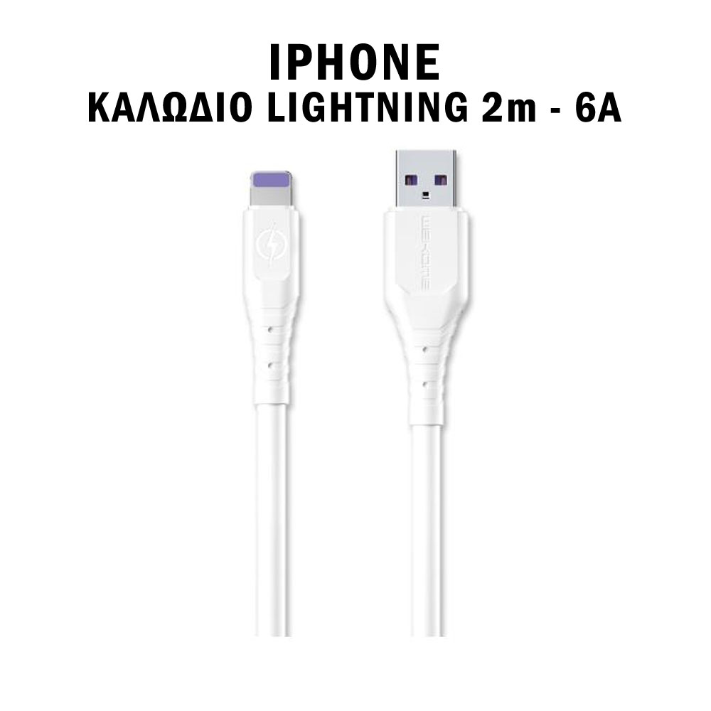 ΚΑΛΩΔΙΟ ΦΟΡΤΙΣΗΣ ΚΑΙ ΜΕΤΑΦΟΡΑΣ ΔΕΔΟΜΕΝΩΝ SUPER FAST 6A IPHONE LIGHTNING/USB 2M WDC-152i ΛΕΥΚΟ WEKOME