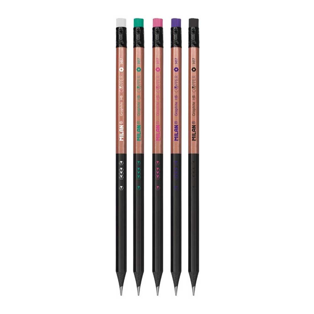 Εντυπωσιακό μολύβι με γόμα Copper από την Milan. Με σκληρότητα μύτης HB και μαλακή γόμα στο επάνω μέρος για να σβήσετε τυχόν λάθη!