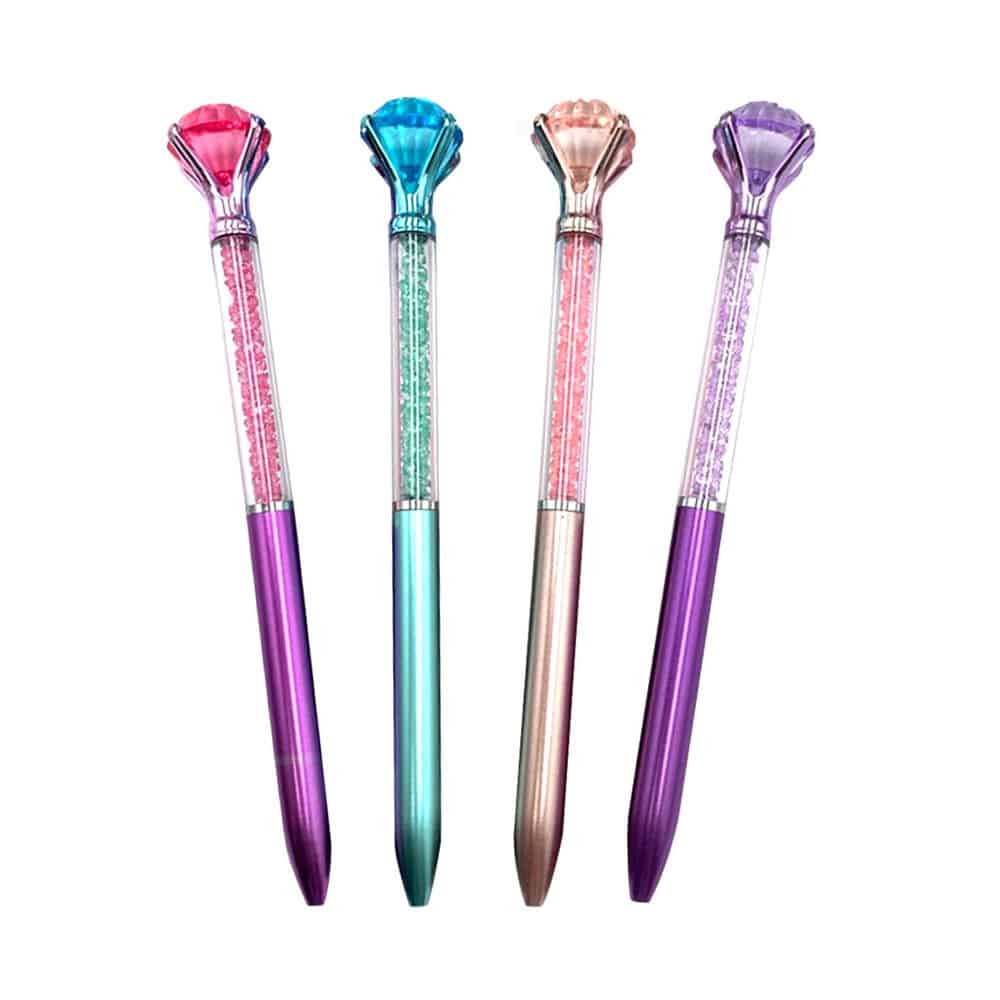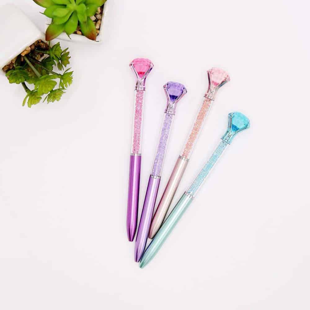 Κάθε χαριτωμένο κομψό στυλό είναι διακοσμημένο στο επάνω μέρος του στυλό με ένα μεγάλο κρυστάλλινο διαμάντι (Μπλε, Ροζ, Μωβ, Ροζ Χρυσό)