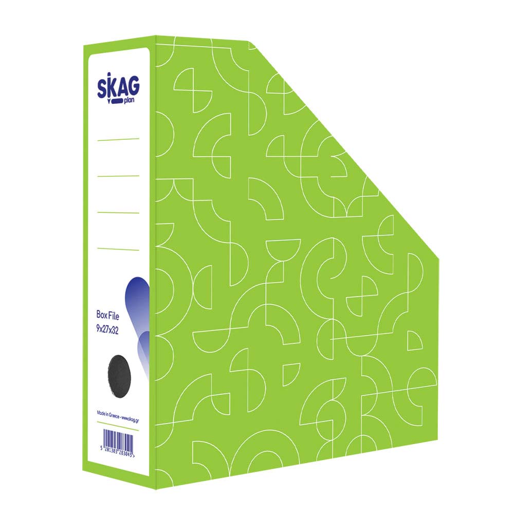Χάρτινο κουτί περιοδικών (Box File) SKAG Art σε ζωηρό λαχανί χρώμα. Διαστάσεις 27x32x9cm, ιδανικό για την οργάνωση και αρχειοθέτηση εγγράφων με μοντέρνα αισθητική στο γραφείο ή το σπίτι.