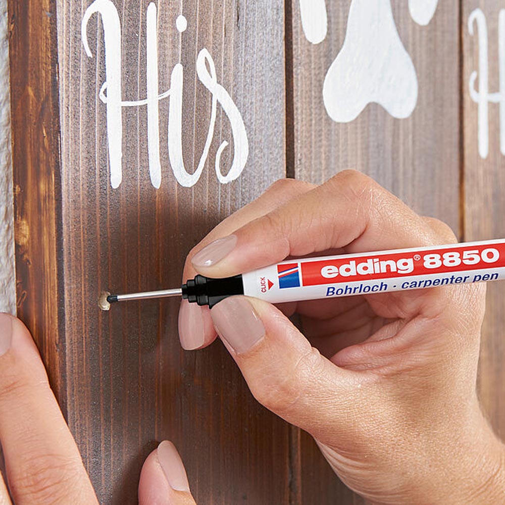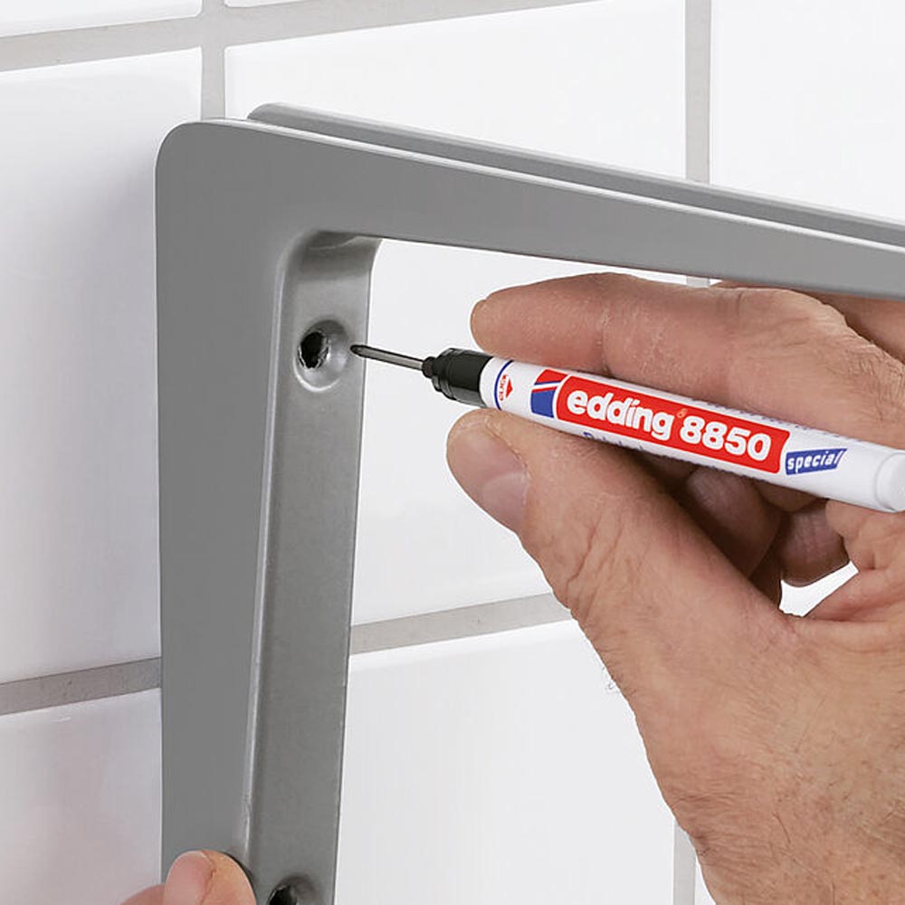 Με τον edding 8850, η τοποθέτηση ραφιών, η συναρμολόγηση επίπλων και οι ηλεκτρολογικές εγκαταστάσεις γίνονται παιχνιδάκι, καθώς μπορείτε να σημαδέψετε το σημείο διάτρησης με απόλυτη ευστοχία.