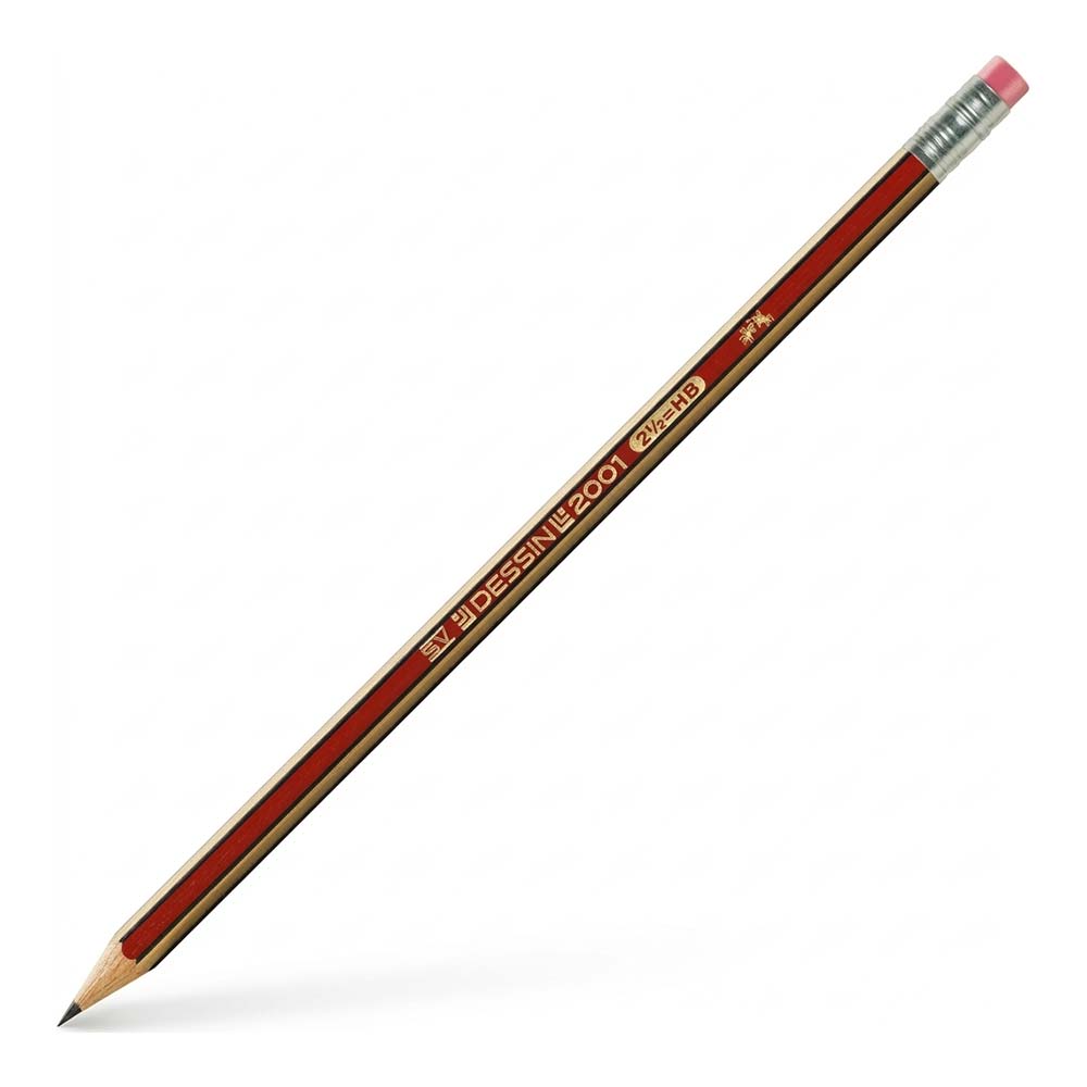 Κλασικό μολύβι Faber-Castell Dessin 2001 με σκληρότητα HB και ενσωματωμένη γόμα. Σε κομψό κόκκινο-χρυσό χρώμα, προσφέρει ομαλή γραφή και μεγάλη αντοχή, ιδανικό για κάθε χρήση.