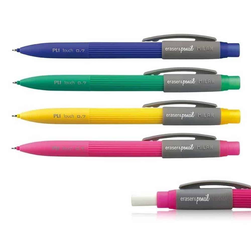 Μηχανικό μολύβι της εταιρείας MILAN με πάχος μύτης 0.7 mm . Με την έξτρα γόμα τους δεν θα σταματάτε να διορθώνετε. Είναι ελαφρύ από απαλό πλαστικό για ατελείωτο και ξεκούραστο γράψιμο.