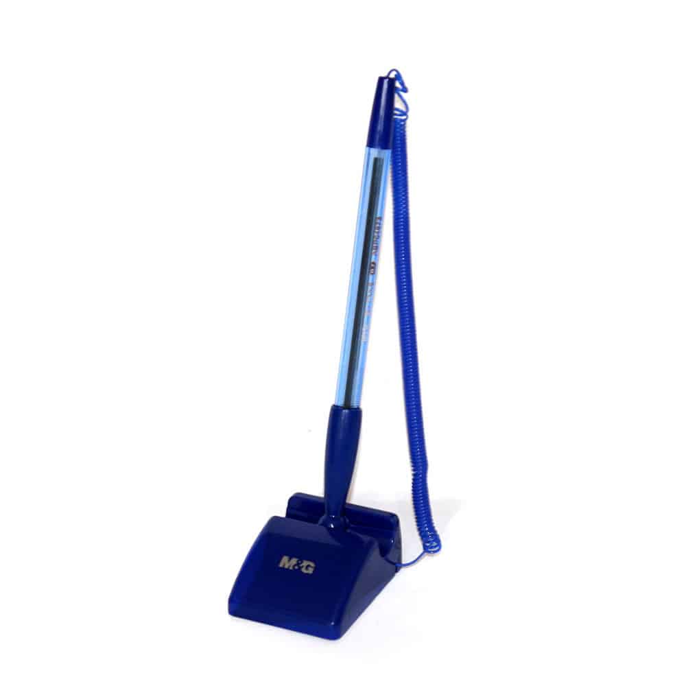 Στυλό με βάση μπλε χρώματος και πλαστικό σπιράλ από την M&G,με μπλε χρώμα γραφής πάχους 0,7 mm.Δέχεται ανταλλακτικό και είναι κατάλληλο για γκισέ γραφείου. Ιδανικό και για δημόσιες υπηρεσίες.