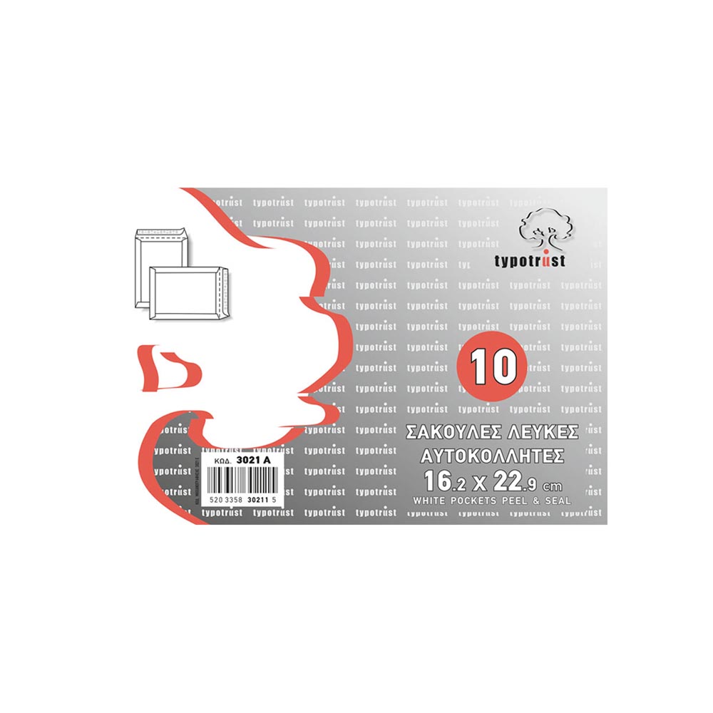 ΦΑΚΕΛΟΣ ΑΛΛΗΛΟΓΡΑΦΙΑΣ ΣΑΚΟΥΛΑ ΛΕΥΚΟ ΑΥΤΟΚΟΛΛΗΤΟΣ 16,2×22,9 ΕΚ. ΠΑΚΕΤΟ 10 ΤΕΜΑΧΙΑ TYPOTRUST