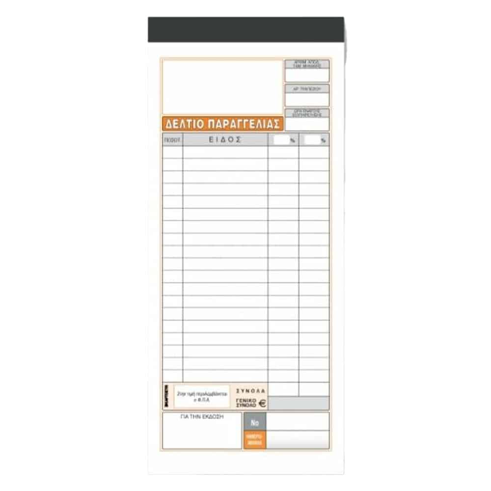 ΔΕΛΤΙΟ ΠΑΡΑΓΓΕΛΙΑΣ ΕΣΤΙΑΤΟΡΙΟΥ ΤΡΙΠΛΟΤΥΠΟ Α249 8.3cmx17.5cm ΧΑΡΤΟΣΥΝ