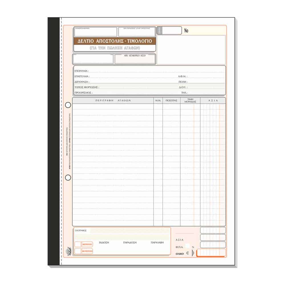 ΔΕΛΤΙΟ ΑΠΟΣΤΟΛΗΣ ΤΙΜΟΛΟΓΙΟ ΓΙΑ ΠΩΛΗΣΗ ΑΓΑΘΩΝ 2 ΦΠΑ ΤΡΙΠΛΟΤΥΠΟ 260 21cmx28cm ΤΥΠΟΤΡΑΣΤ