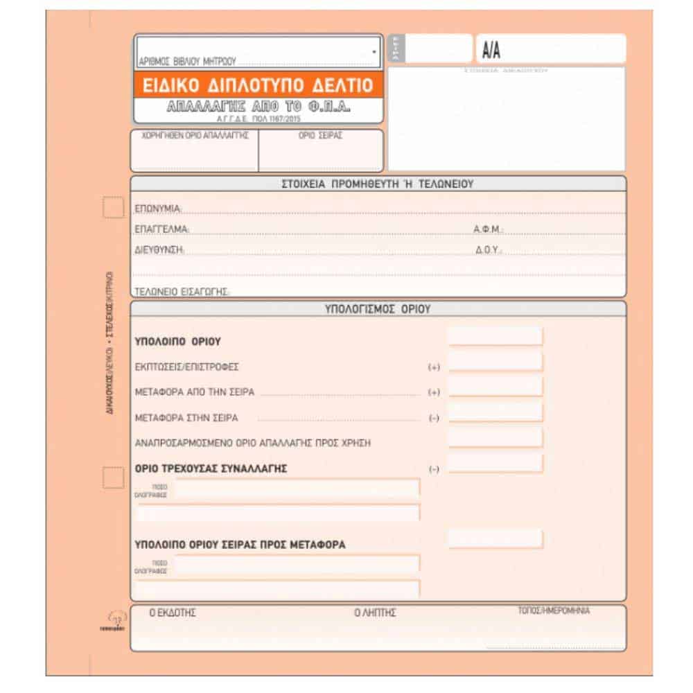 ΕΙΔΙΚΟ ΔΕΛΤΙΟ ΑΠΑΛΛΑΓΗΣ Φ.Π.Α. 2ΠΛΟΤΥΠΟ 19Χ20ΕΚ Νο395 ΤΥΠΟΤΡΑΣΤ
