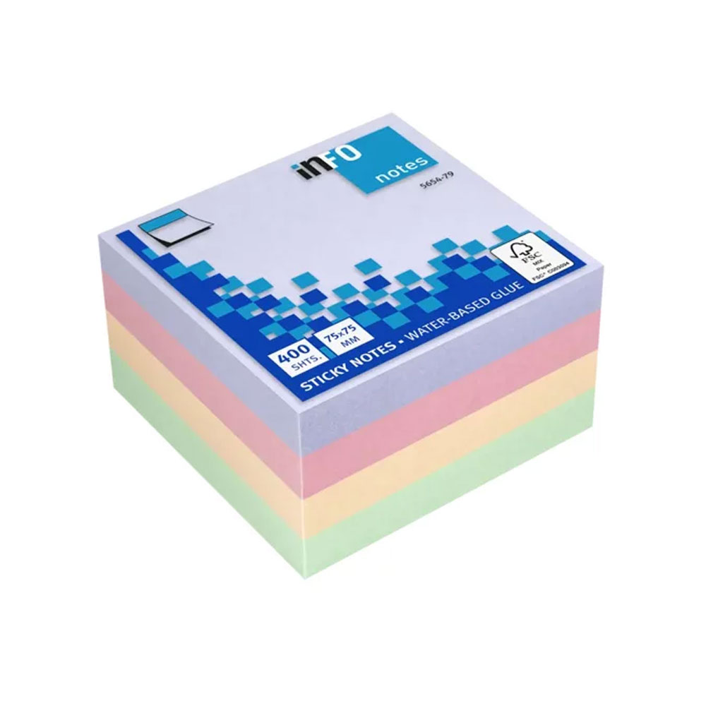 ΧΑΡΤΑΚΙΑ ΣΗΜΕΙΩΣΕΩΝ ΠΟΛΥΧΡΩΜΑ ΠΑΣΤΕΛ ΑΥΤΟΚΟΛΛΗΤΑ 75mmx75mm 400Φ INFO NOTES